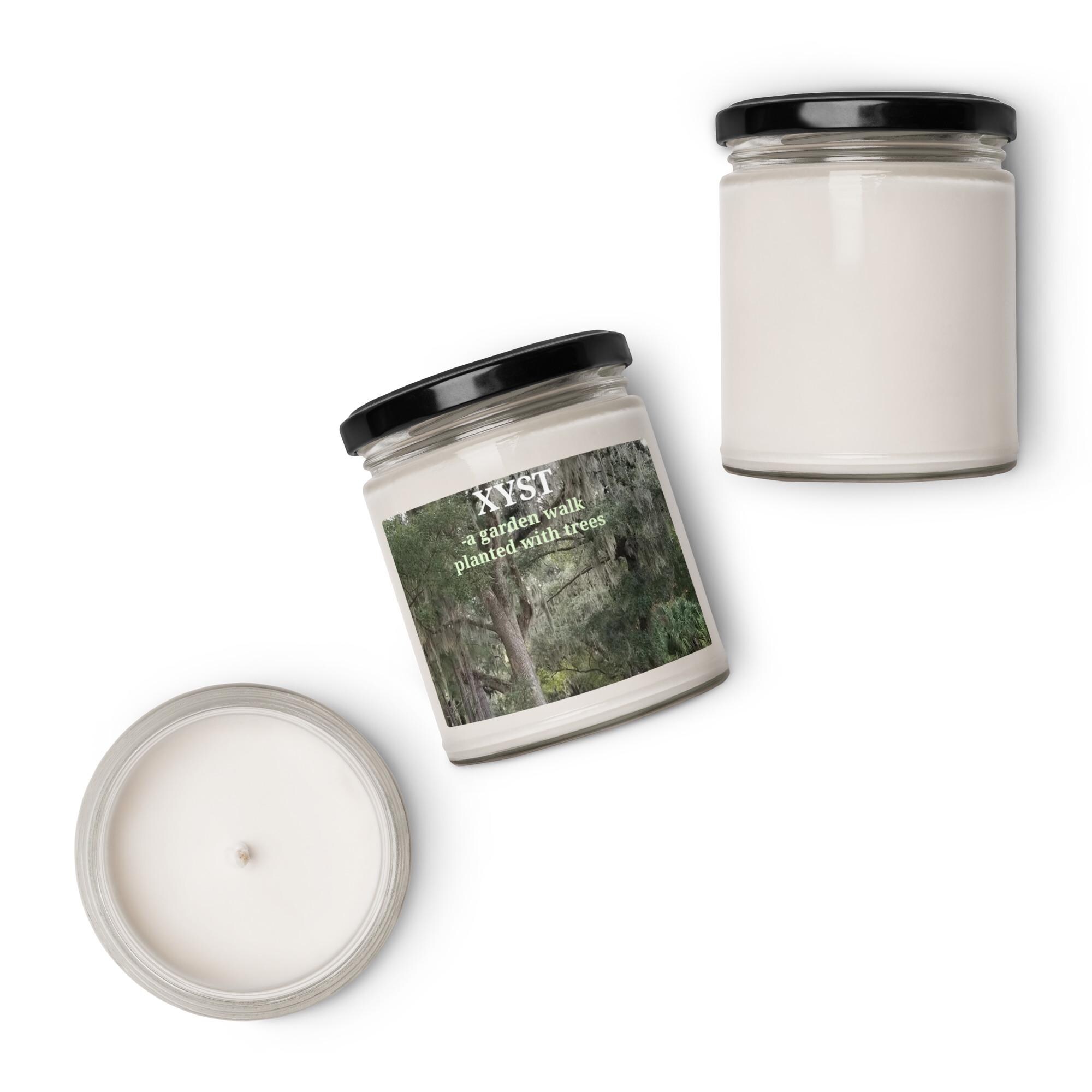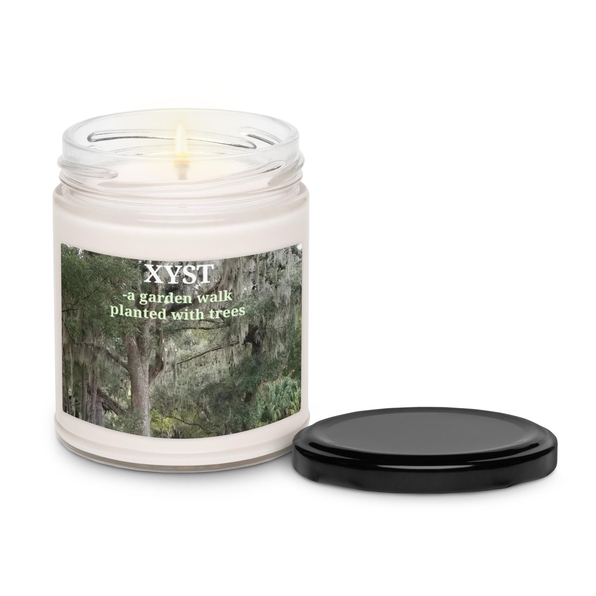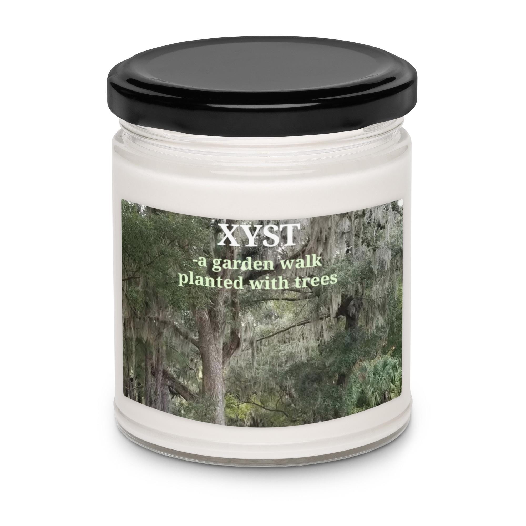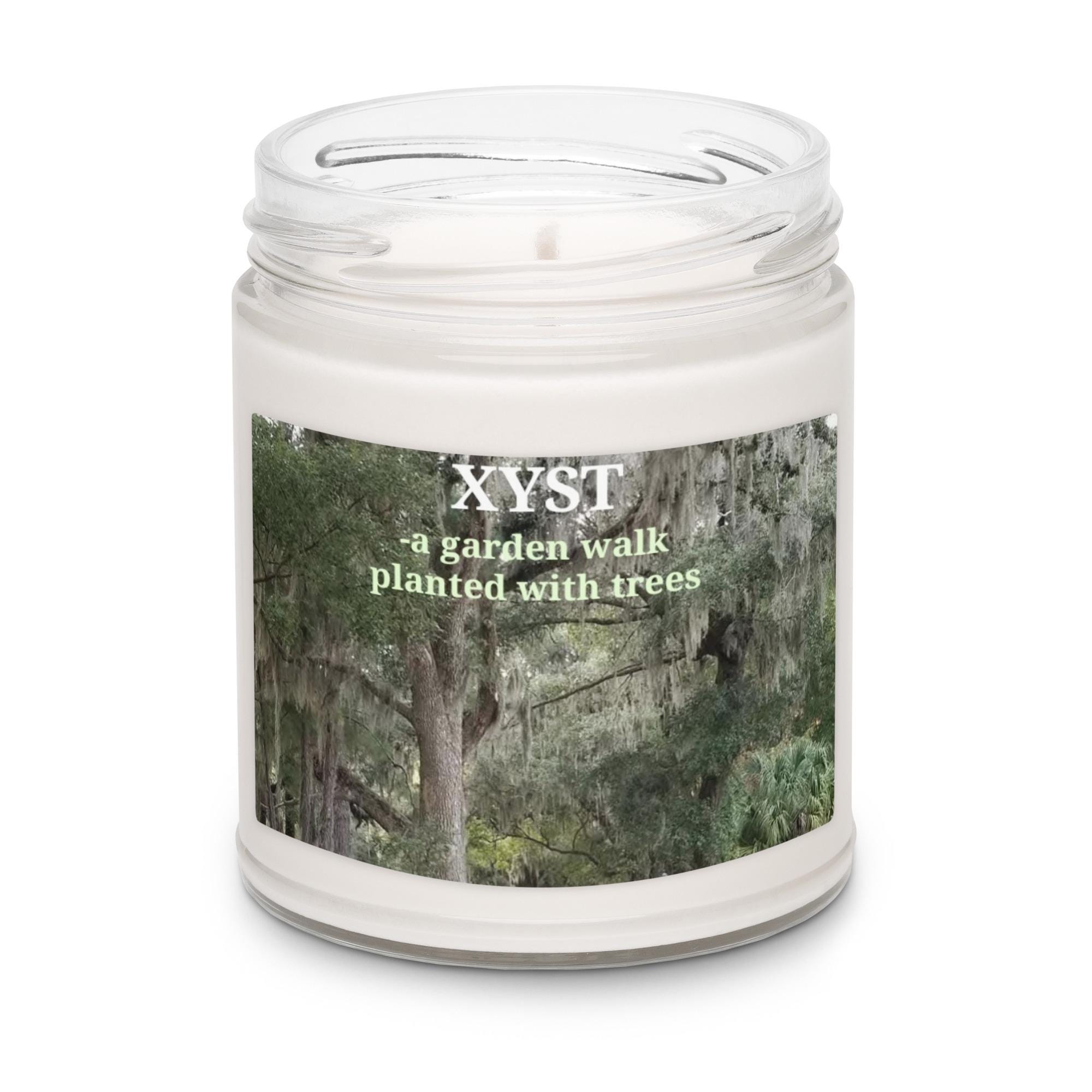 Discover tranquility and the beauty of language with the XYST White Sage & Lavender Scented Soy Candle. Featuring the definition of "XYST"—a garden walk planted with trees—this candle is adorned with an original photograph by the Karma Craftess, capturing the enchanting scene of Spanish moss-draped old oak trees in the low country of South Carolina. The harmonious blend of soothing scent and evocative word meaning creates a peaceful, meditative atmosphere inspired by nature’s quiet elegance.