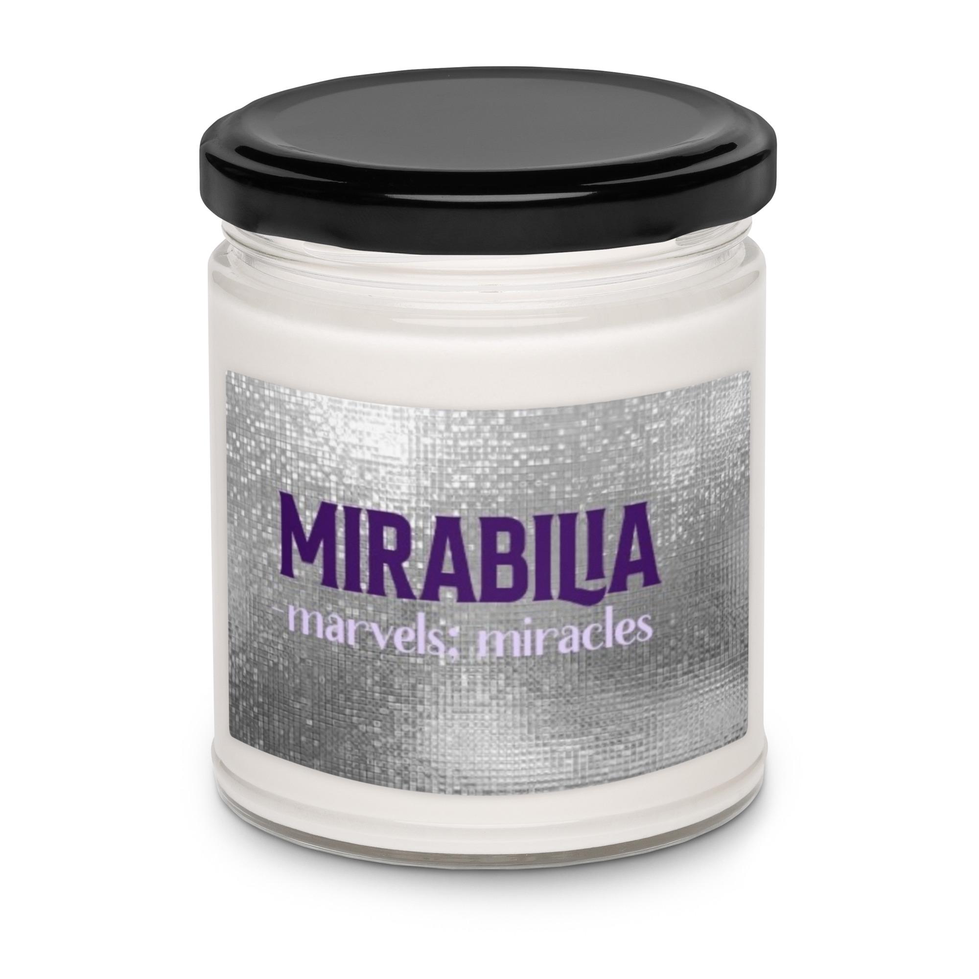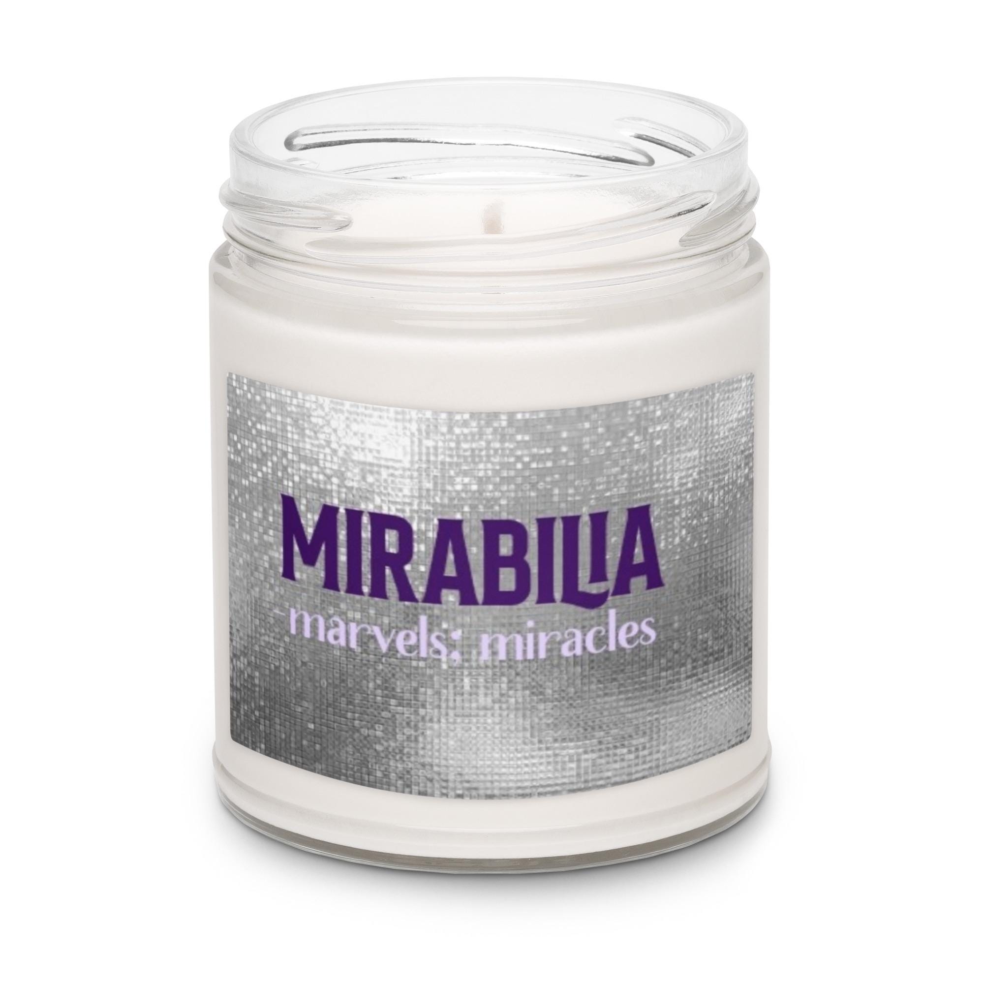 Step into a world of wonder with the Mirabilia Peppered Passionfruit Scented Soy Candle. Featuring the definition of "Mirabilia"—meaning marvels; miracles—printed in striking dark and light purple font atop an original silver sequined background, this candle is designed to inspire manifestation, intention setting, positivity, and self-confidence. The bold, juicy scent of passionfruit with a hint of pepper creates an energizing atmosphere, perfect for dreamers, glam witches, and anyone ready to embrace their own magic.
