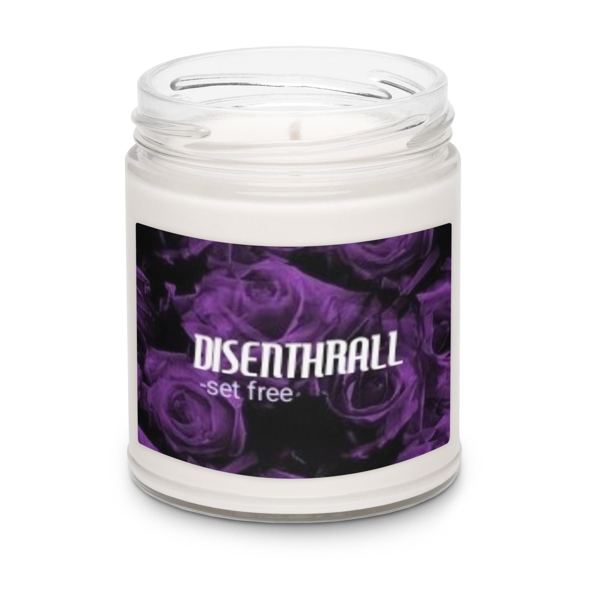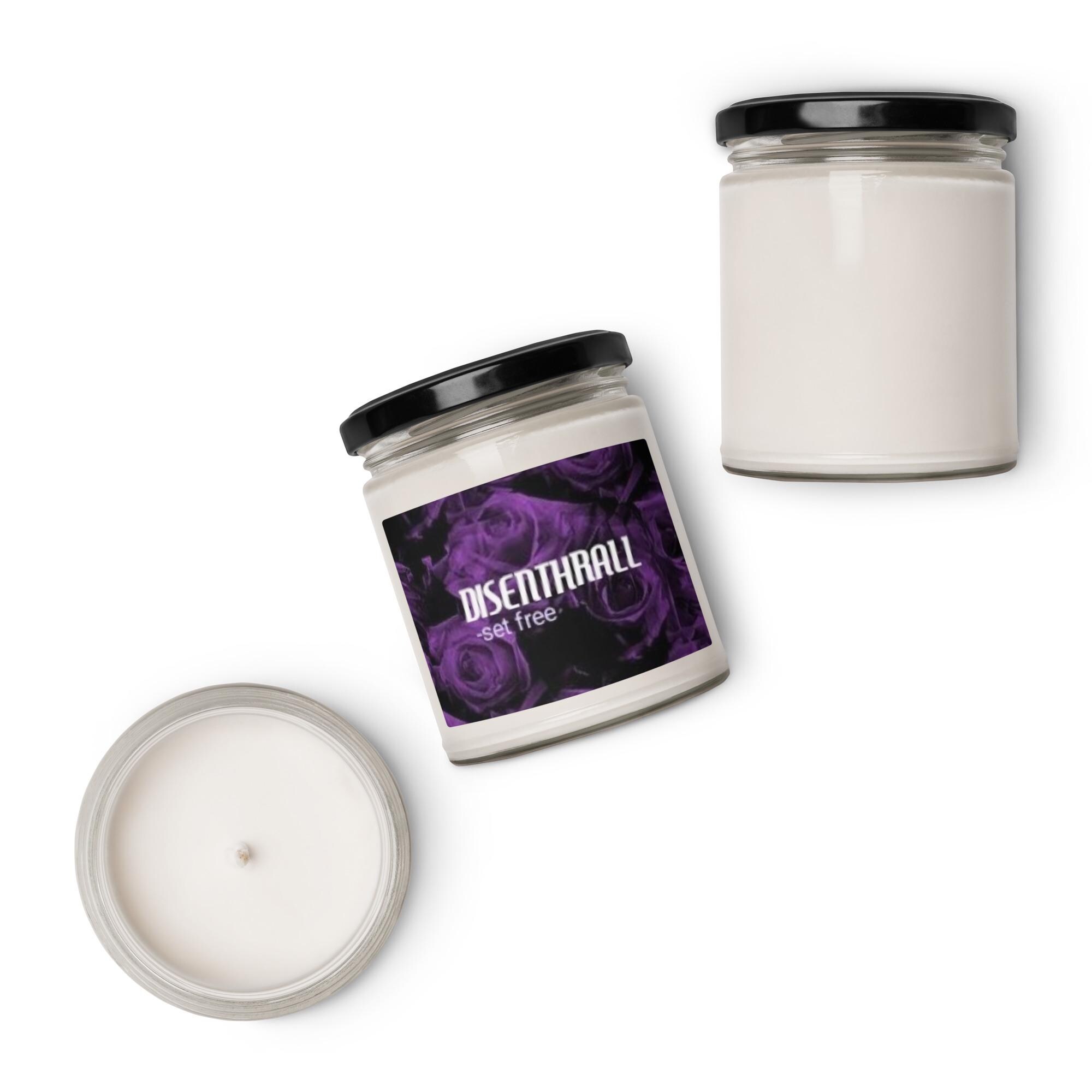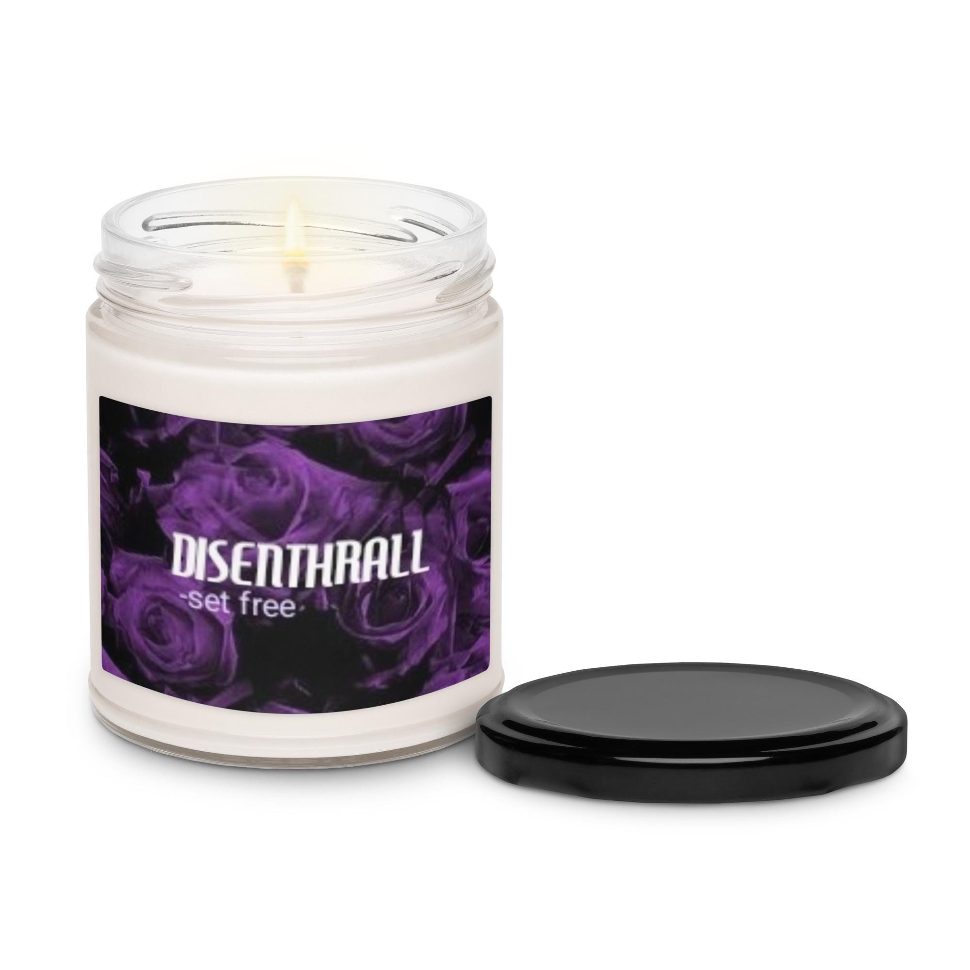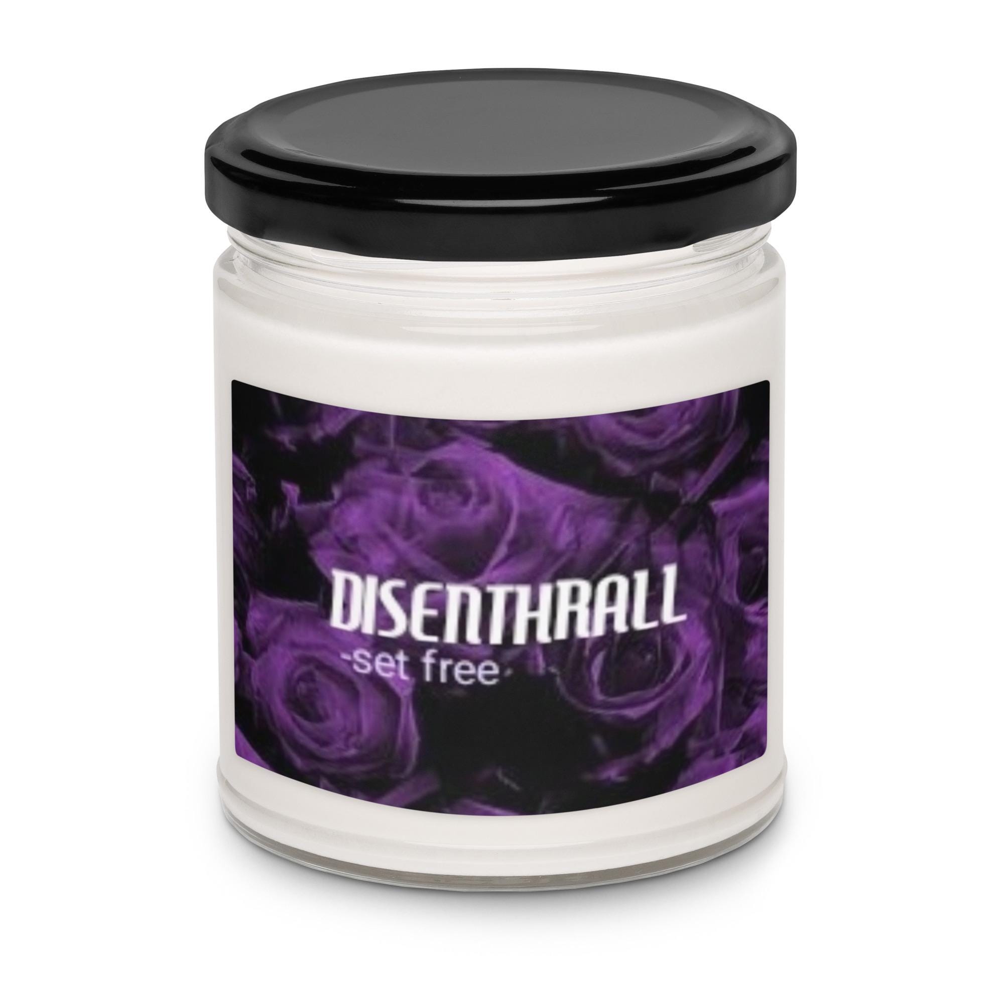 Experience the soothing power of release and renewal with the Disenthrall White Sage & Lavender Scented Soy Candle. This candle features the definition of "Disenthrall" in elegant white and light lavender font, set against a striking black background adorned with delicate purple roses. The harmonious blend of white sage and lavender creates a calming, peaceful atmosphere, perfectly complementing the candle’s message of letting go, finding freedom, and embracing peace.