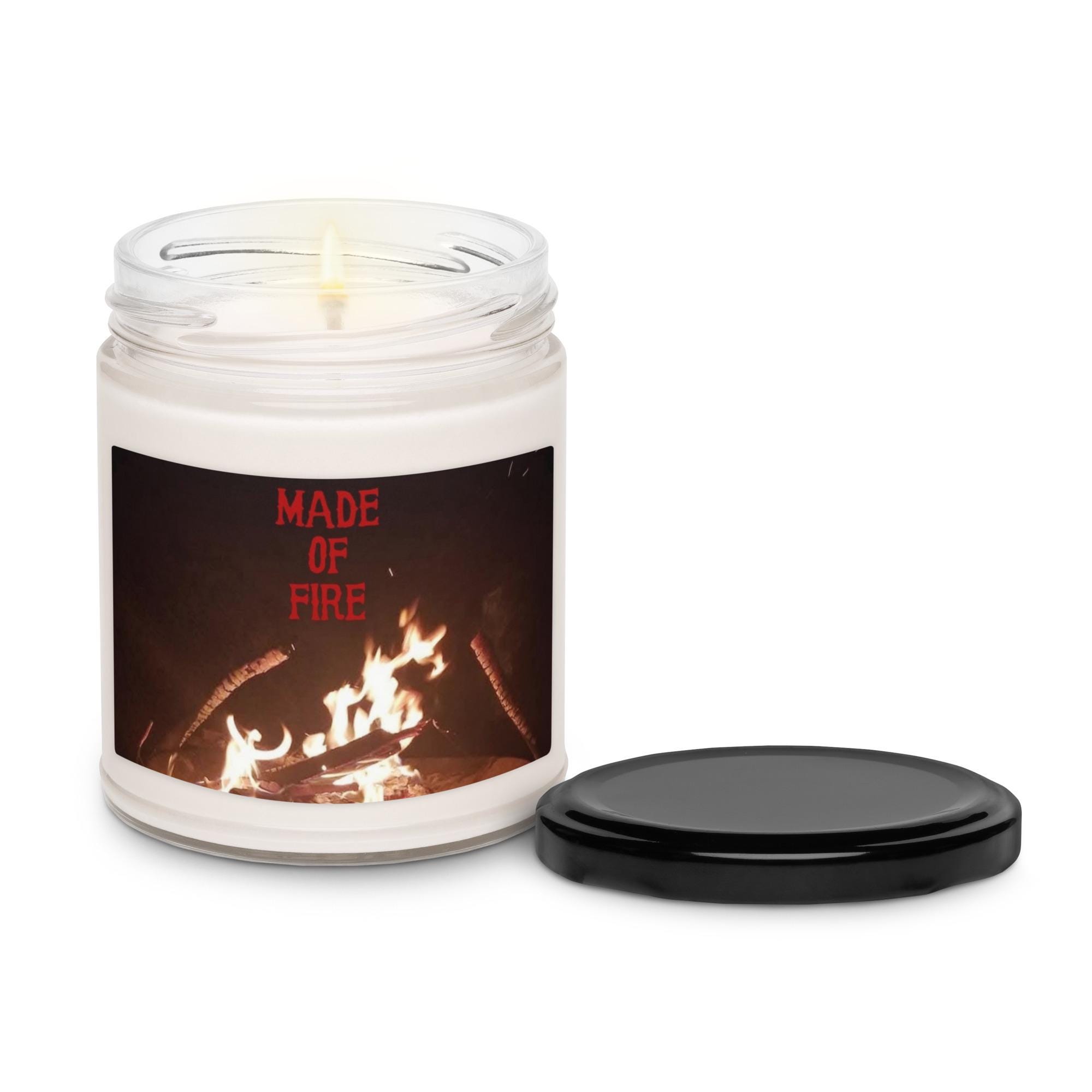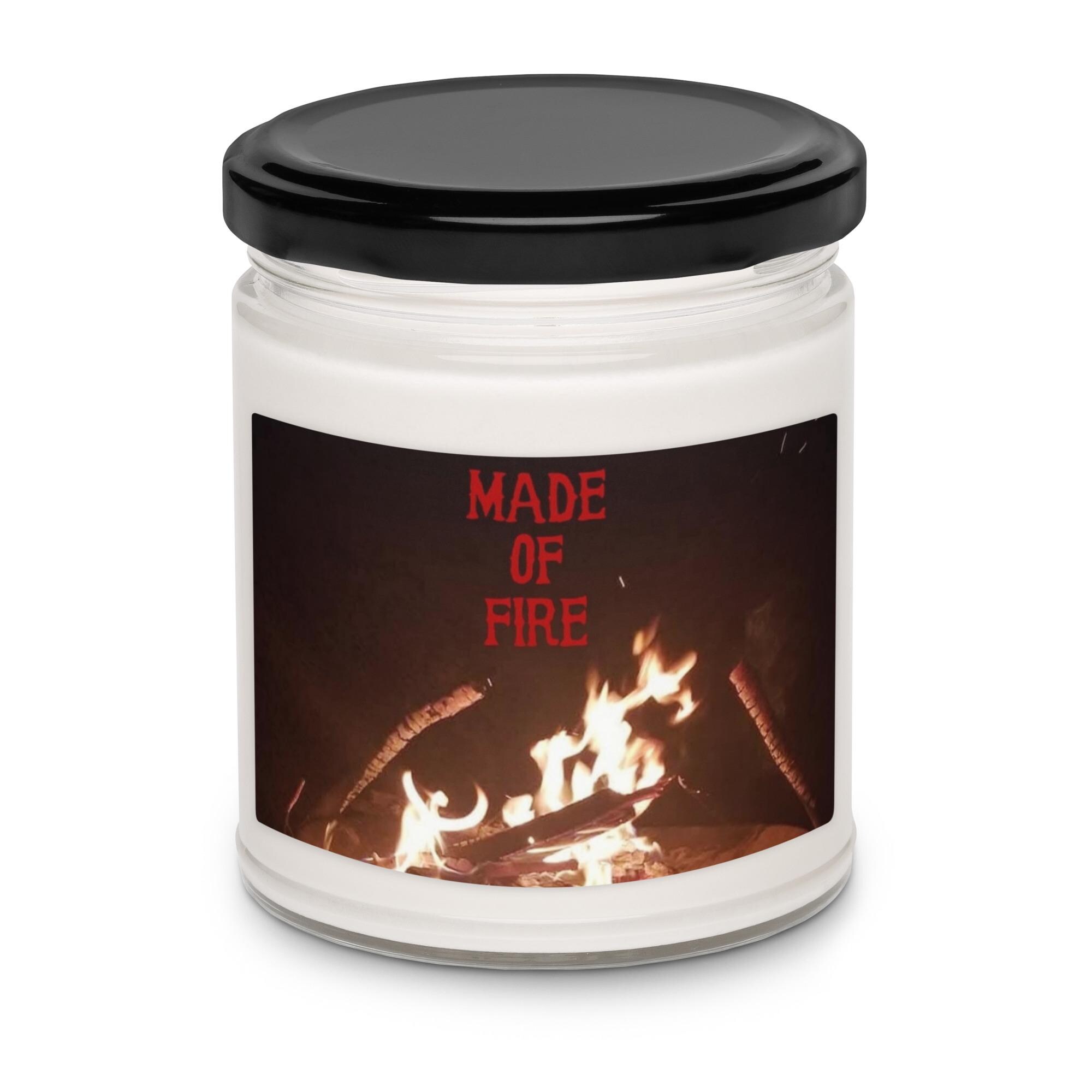 Ignite your spirit and space with the Made of Fire Cinnamon Vanilla Scented Soy Candle. Featuring the bold quote "Made of Fire" in striking red font, this candle is set against an original Karma Craftess photograph of fire blazing in a backyard fire pit. The warm, spicy blend of cinnamon and creamy vanilla is crafted to evoke the energy, passion, and comfort of a glowing fire, blending scent and message for a truly unique experience.