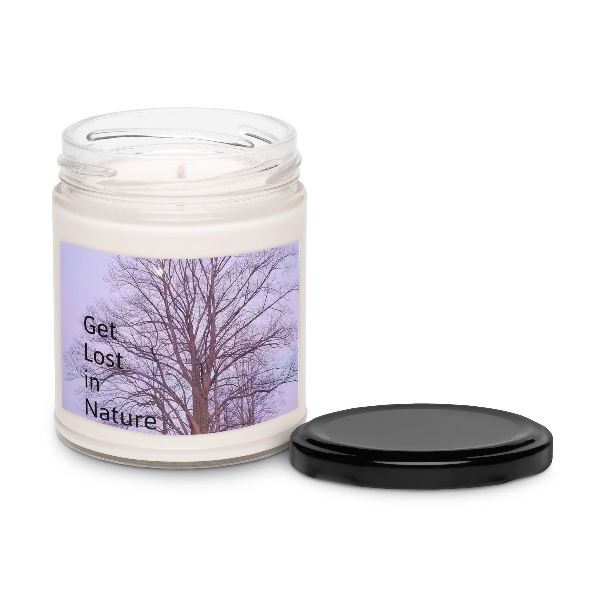 Step into serenity with the Get Lost in Nature Sea Salt & Orchid Scented Soy Candle. Featuring the grounding quote in bold black font, this candle is set against an original Karma Craftess photograph of a glowing full moon in a light purple night sky beside a tree, captured from a backyard in the quirky and beautiful town of Asheville, NC. The refreshing sea salt and delicate orchid fragrance blend perfectly with the moonlit design and message, creating a unique vibe that inspires calm, reflection, and connection with nature.