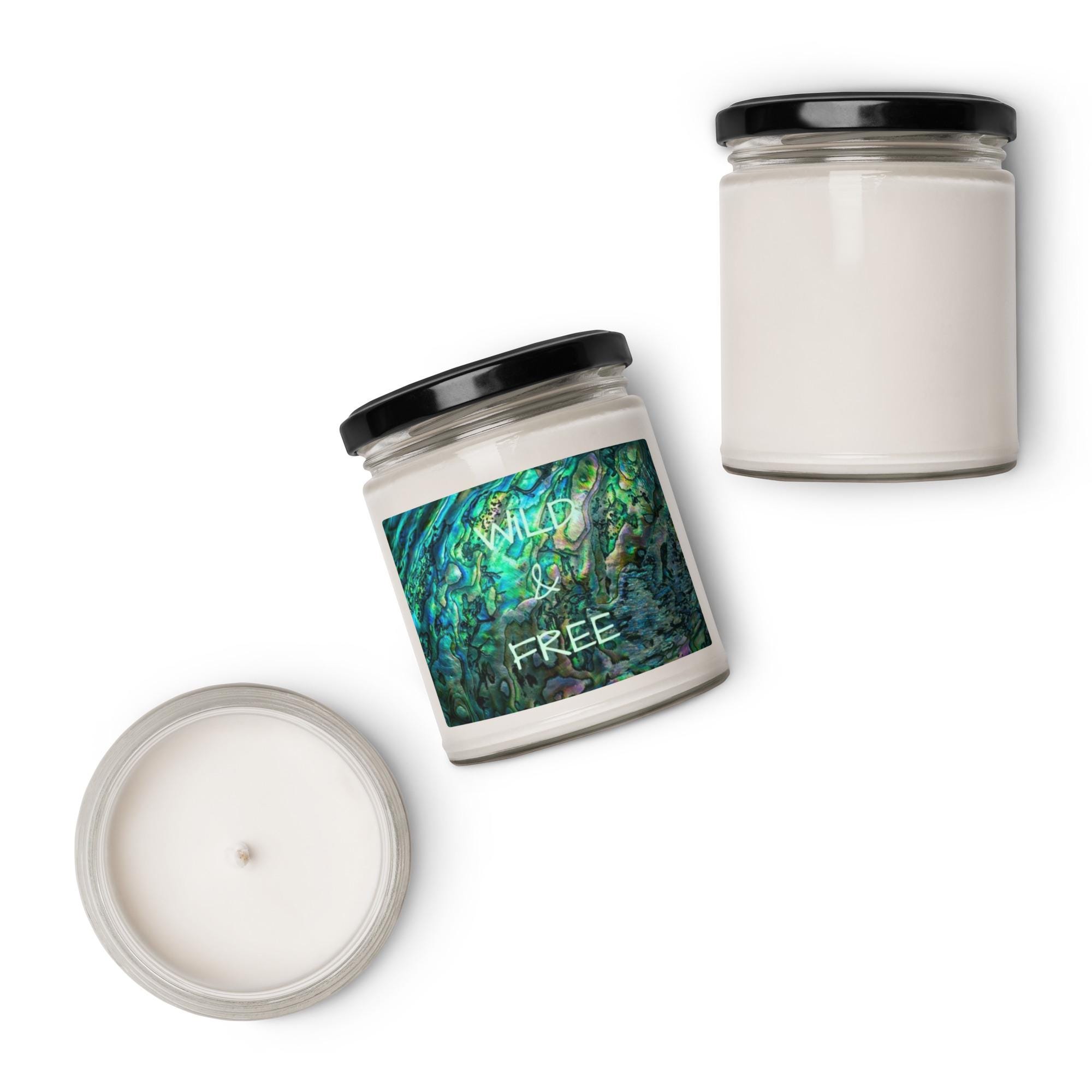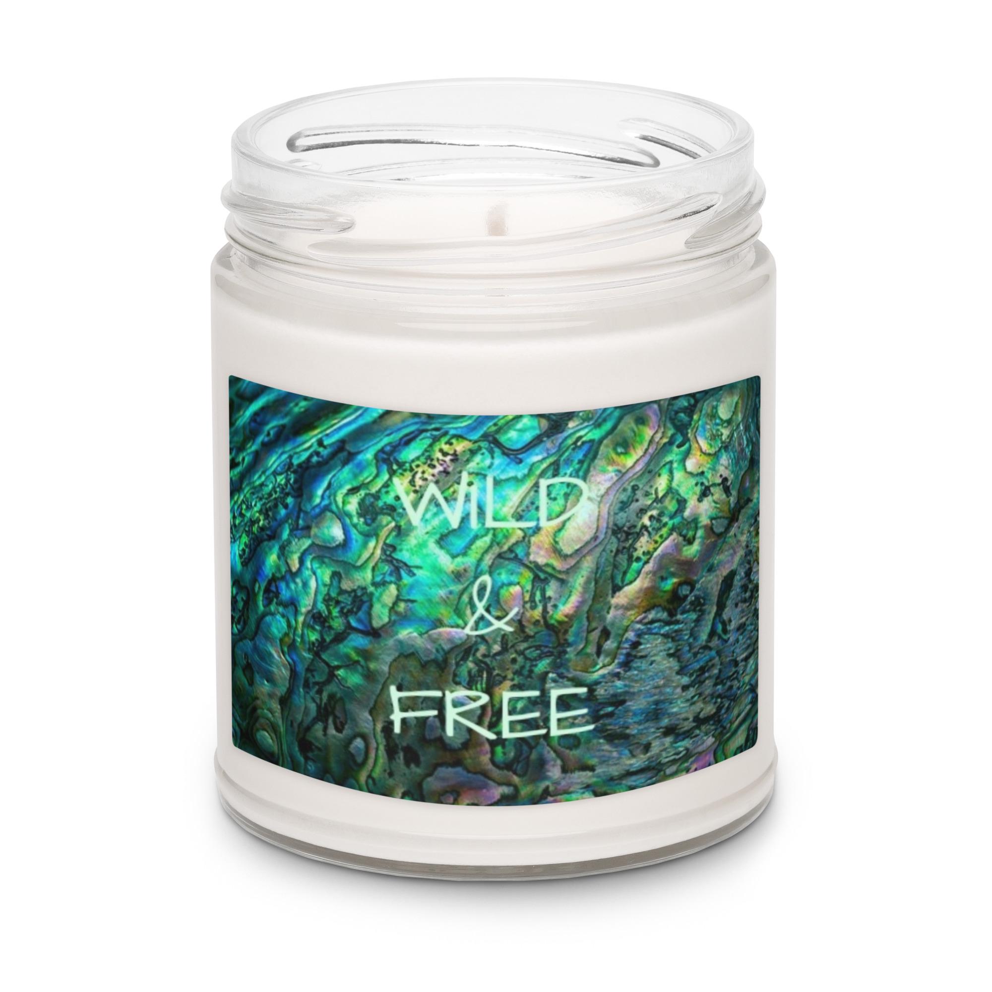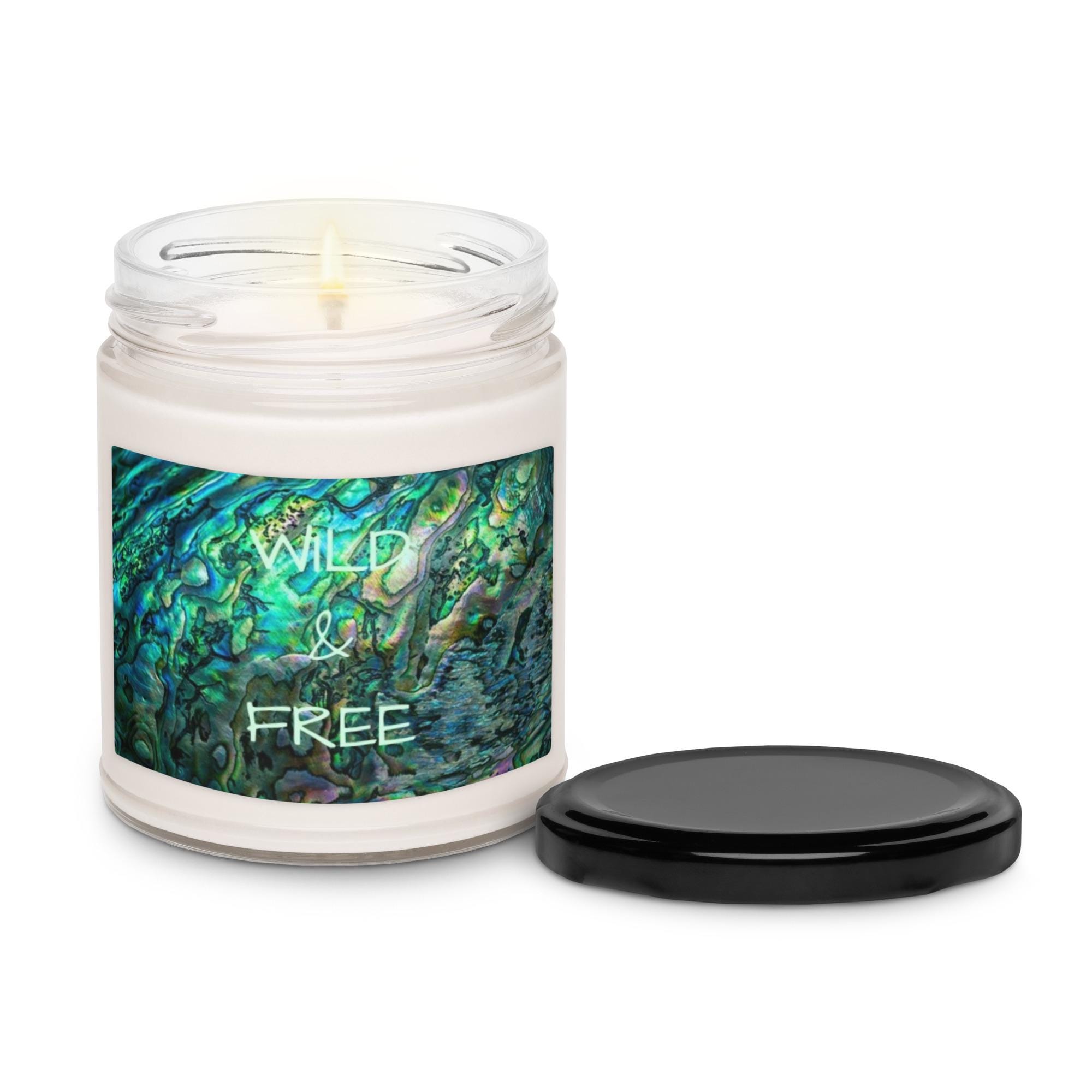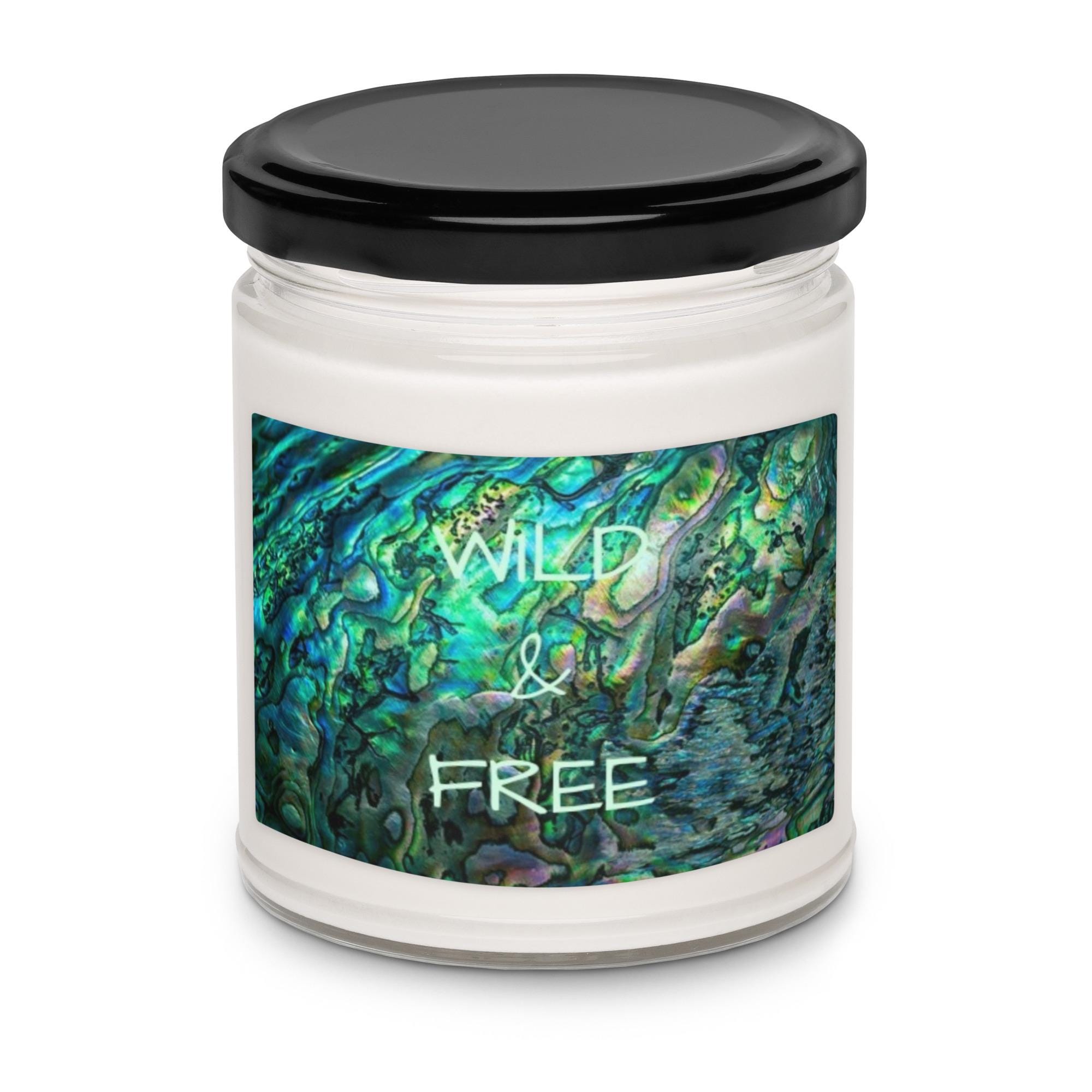 Infuse any sacred space with magic, mindfulness, and intention through this beautifully designed soy wax candle featuring the text "WILD & FREE" on an abalone/paua background design. This candle is offered in 5 amazing scents and is a harmonious blend of art and aroma, created to support meditation, manifestation, and self-healing rituals.